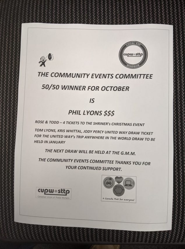 Here are the winners of today’s 50-50 draw at the General Membership Meeting. I can’t stress enough how much your support means to the local’s Community Event Committee. All the…